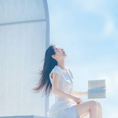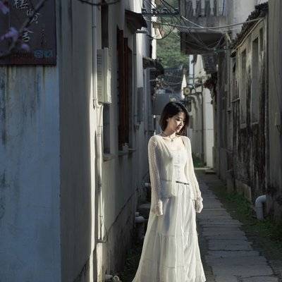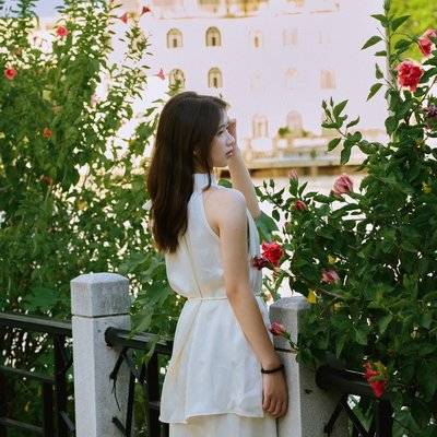 小清新人像。风车花海红房子
